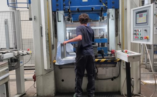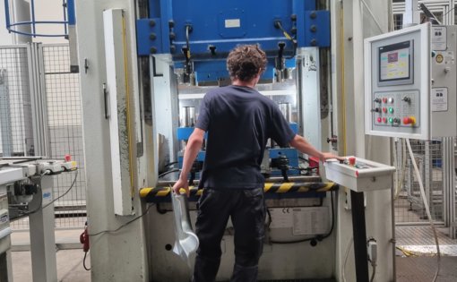 Momentan ist Christian in der Produktion eingesetzt. Hier wird er gerade von seinen Kollegen an einer Fertigungsanlage eingelernt. Er findet es spannend, wie die hochautomatische Produktion inklusive der Roboter funktionieren.