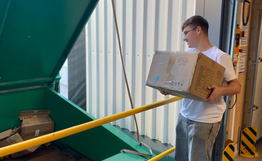Während seiner Ausbildungszeit wird er nämlich in der Logistik bei der Firma RÖSLE, sowie in der Logistik der Firma GRÖMO eingesetzt.