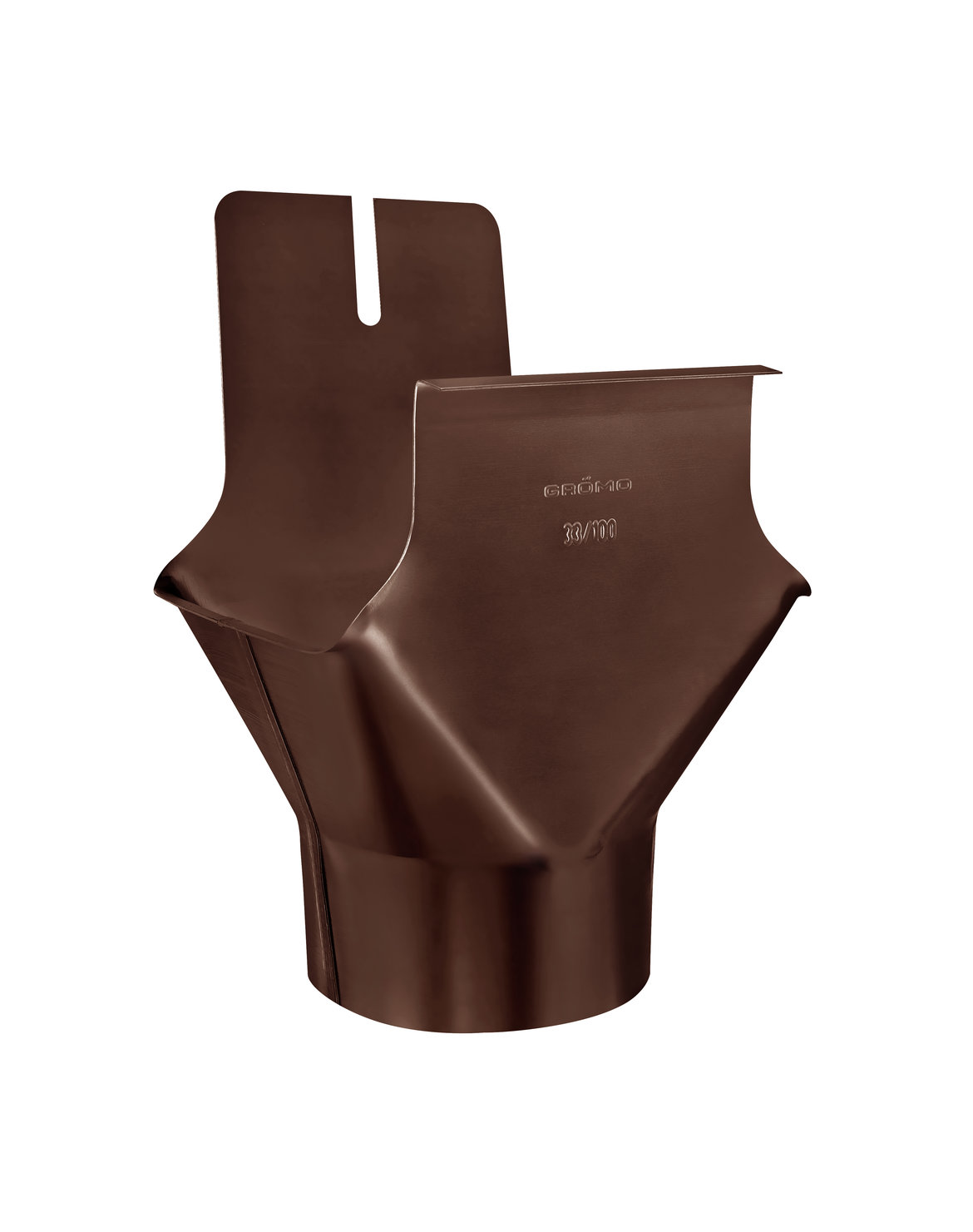 Brick red (82316) Description: Plug-in gutter outlet - box shape gutter - round pipe Nominal size (mm): 333/100 Manufacturer: GRÖMO Item no.: 82316 Material: Coated aluminium Colour: Brick red (similar to RAL 8004) Surface: SX-surface (smooth) Version: Roll seam welded, with loop for hooking in Drainage capacity (l/s): 6.0 Norm: DIN EN 612:2005-04 |