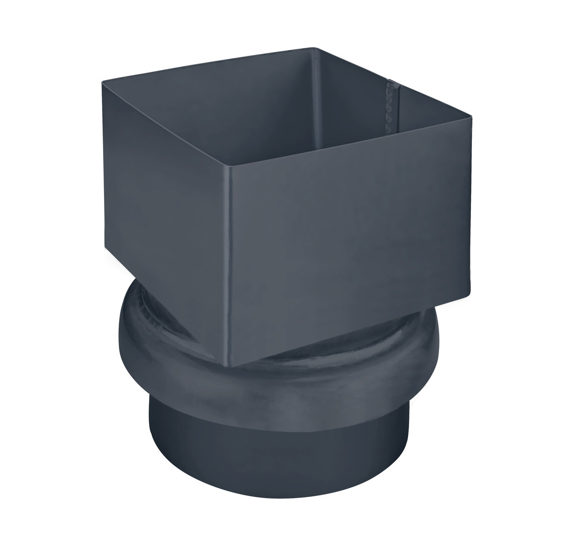 Anthracite (89631) Description: Downpipe to standpipe adapter box shape to round Nominal size (mm): 80/80 Manufacturer: GRÖMO Item no.: 89631 Material: Coated galvanised steel Colour: Anthracite (RAL 7016) Surface: TX-surface (textured) Version: On NG 100, made of titanium zinc |