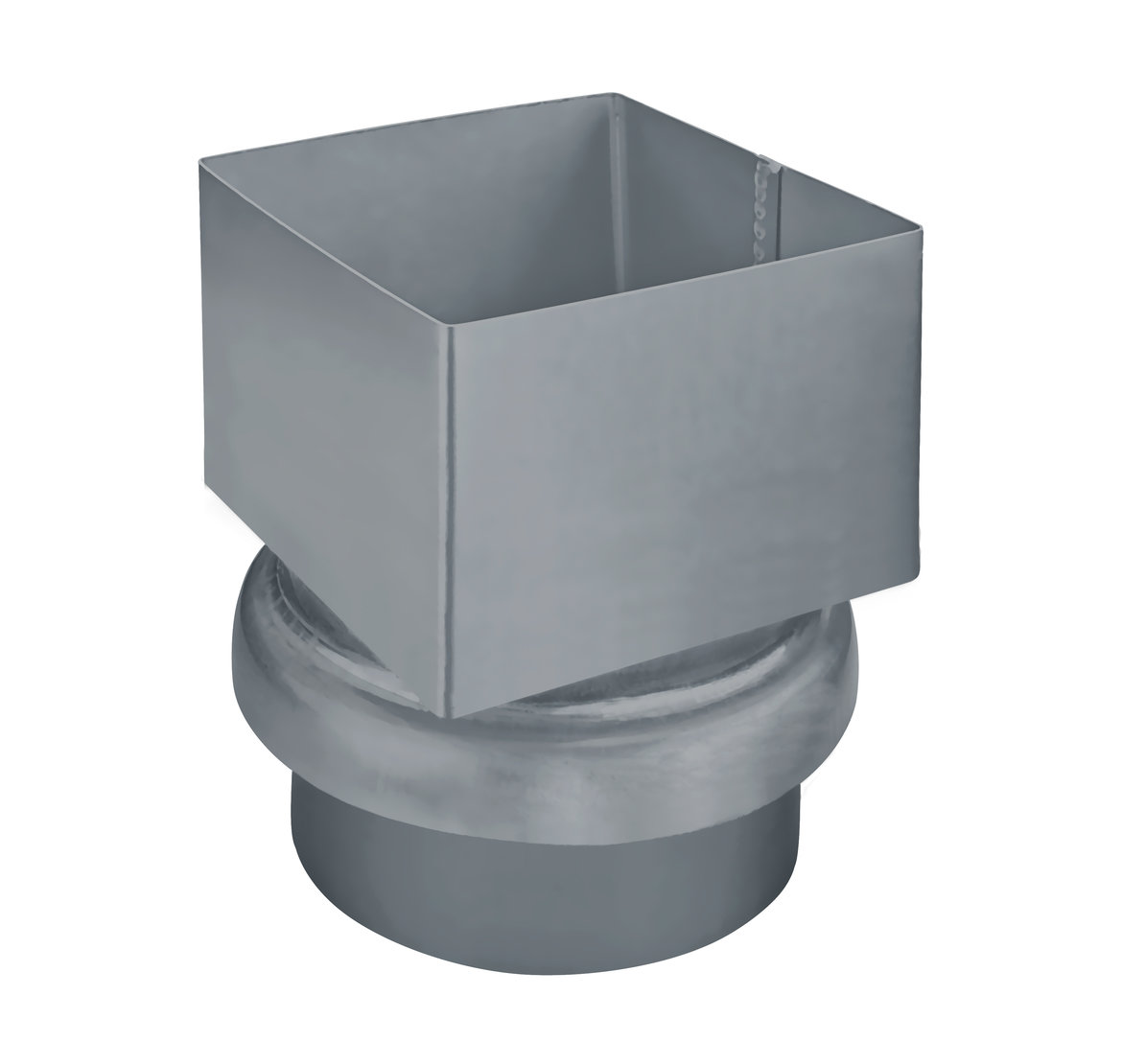 grey (83643) Description: Downpipe to standpipe adapter box shape to round Nominal size (mm): 100/100 Manufacturer: GRÖMO Item no.: 83643 Material: Coated galvanised steel Colour: Light grey (similar to RAL 7005) Surface: SX-surface (smooth) Version: On NG 100, made of titanium zinc |