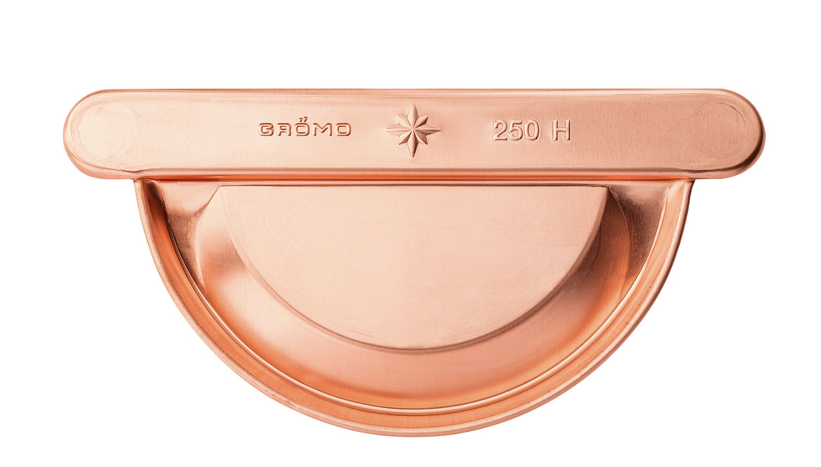 GRÖMO Gutter end cap half round universal - high Copper (60375) Description: Gutter end cap half round universal - high Material: Copper Nominal size (mm): 250 Manufacturer: GRÖMO Item no.: 60375 Version: To hems Norm: DIN EN 612:2005-04 |