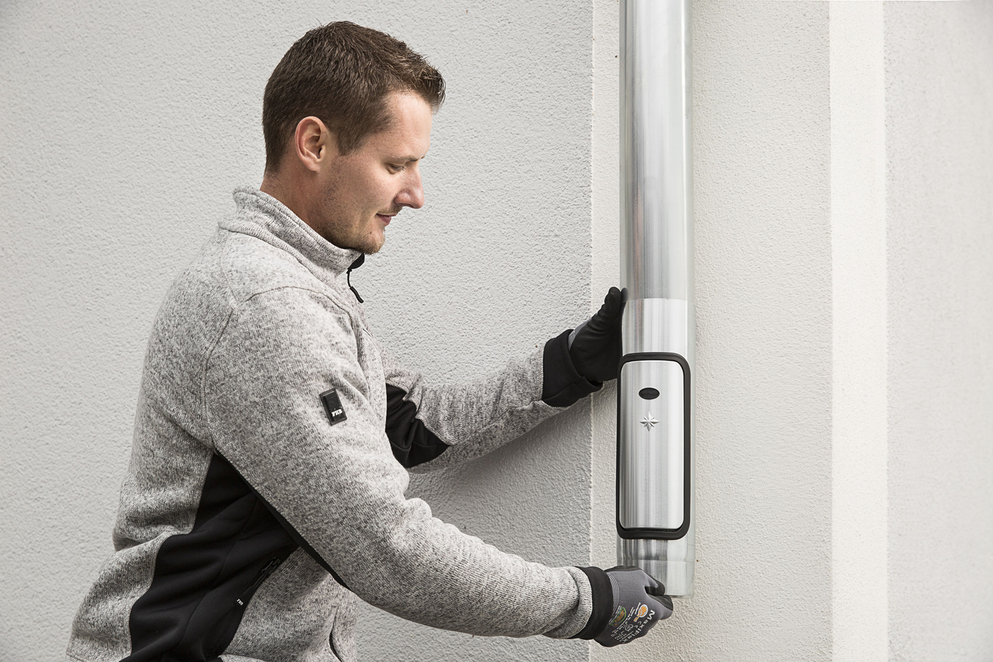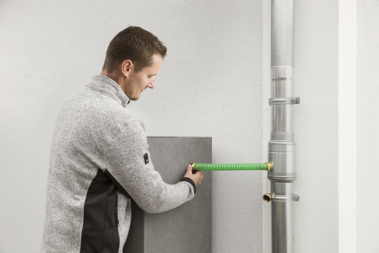 Ob im Neubau oder bei der Sanierung: Die Regenwasserklappen von GRÖMO sind schnell montiert. Der passgenaue Übergang vom Fallrohr zur Regenwasserklappe macht eine Aufweitung überflüssig, so dass sie einfach auf das Fallrohr geschoben werden können. Dank des Einzugs sind die Regenwasserklappen unten ebenso mühelos zu montieren. Sie werden direkt in das Fallrohr gesteckt. Eine zusätzliche Steckmuffe für den Anschluss ist nicht notwendig.